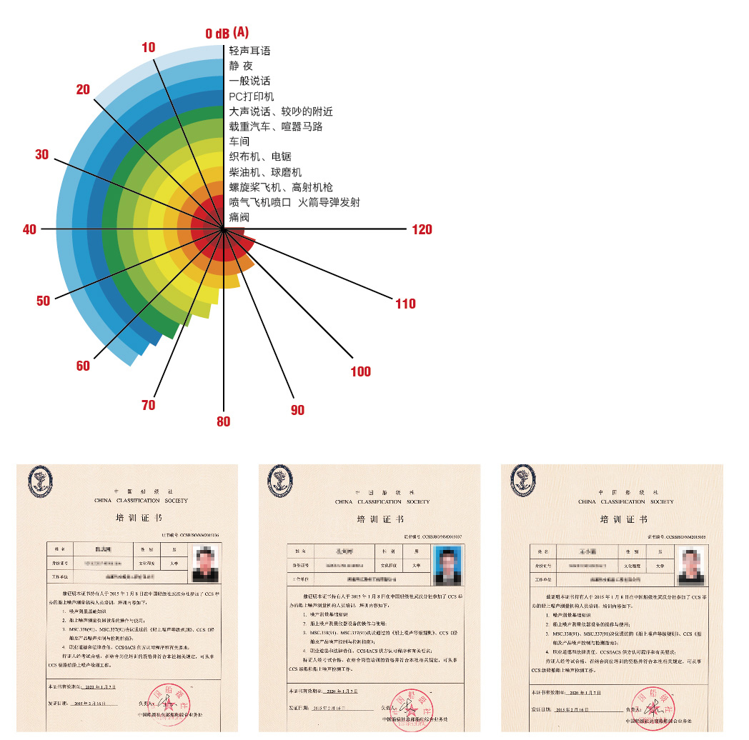 噪聲檢測(cè)部成立于2015年,已取得CCS/IACS船上噪聲測(cè)量供方認(rèn)可資質(zhì)。目前具備噪聲檢測(cè)工程師5人,其中取得CCS資質(zhì)3人,具備噪聲、聲音測(cè)量和所使用設(shè)備處理方面的專(zhuān)業(yè)知識(shí),具備較強(qiáng)的工程保障能力。